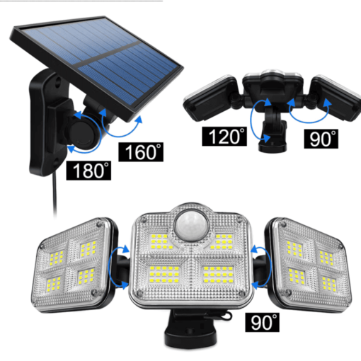 Foco Solar Triple 122 Led con Control Remoto y Sensor de Movimiento