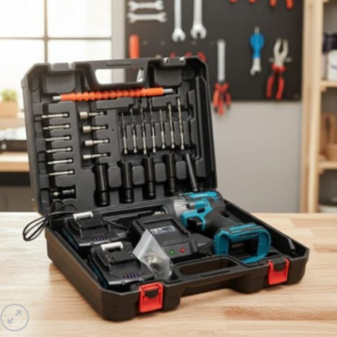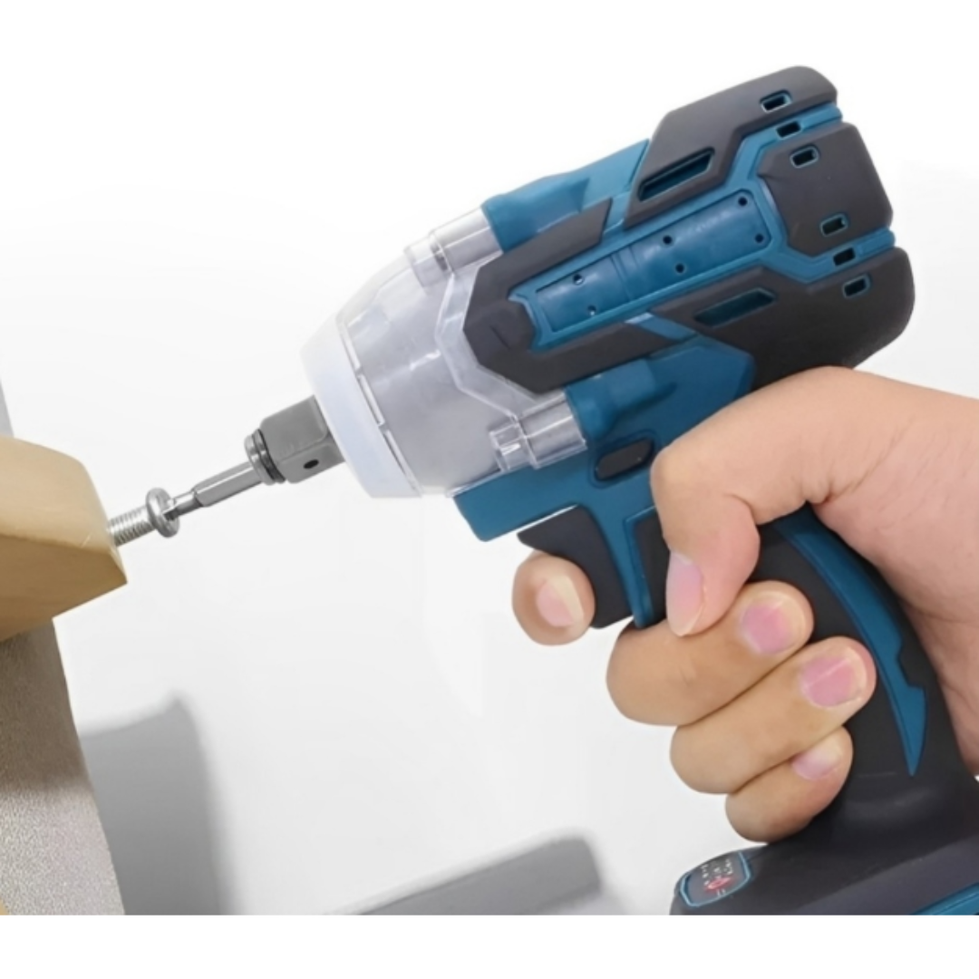 Set de Accesorios Incluido: Junto con la llave de impacto, recibirás un set de accesorios esenciales, que incluye  dados de impacto de tamaños variados, puntas Phillips y brocas de perforación. Estos accesorios te permitirán enfrentar una amplia gama de tareas, desde aplicaciones mecánicas hasta proyectos de construcción y bricolaje.