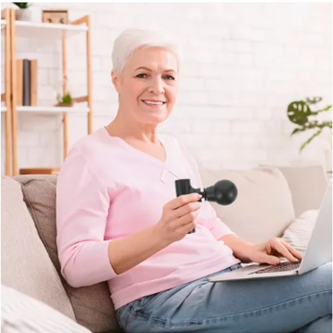 La pistola masajeador mini acompaña tu rutina. Ya sea en tus momentos de cuidado personal, o cuando te ejercitas. Es ideal para el calentamiento, o el momento de relajación.