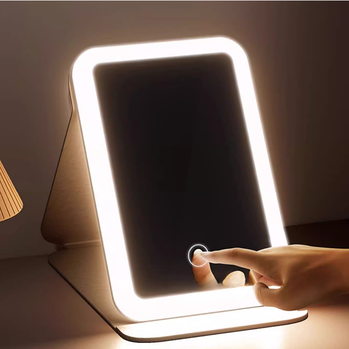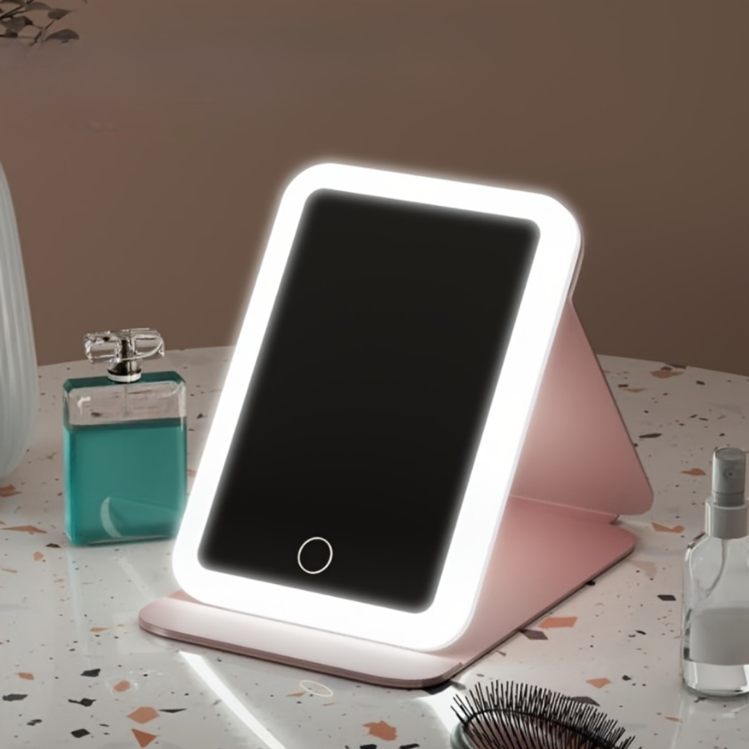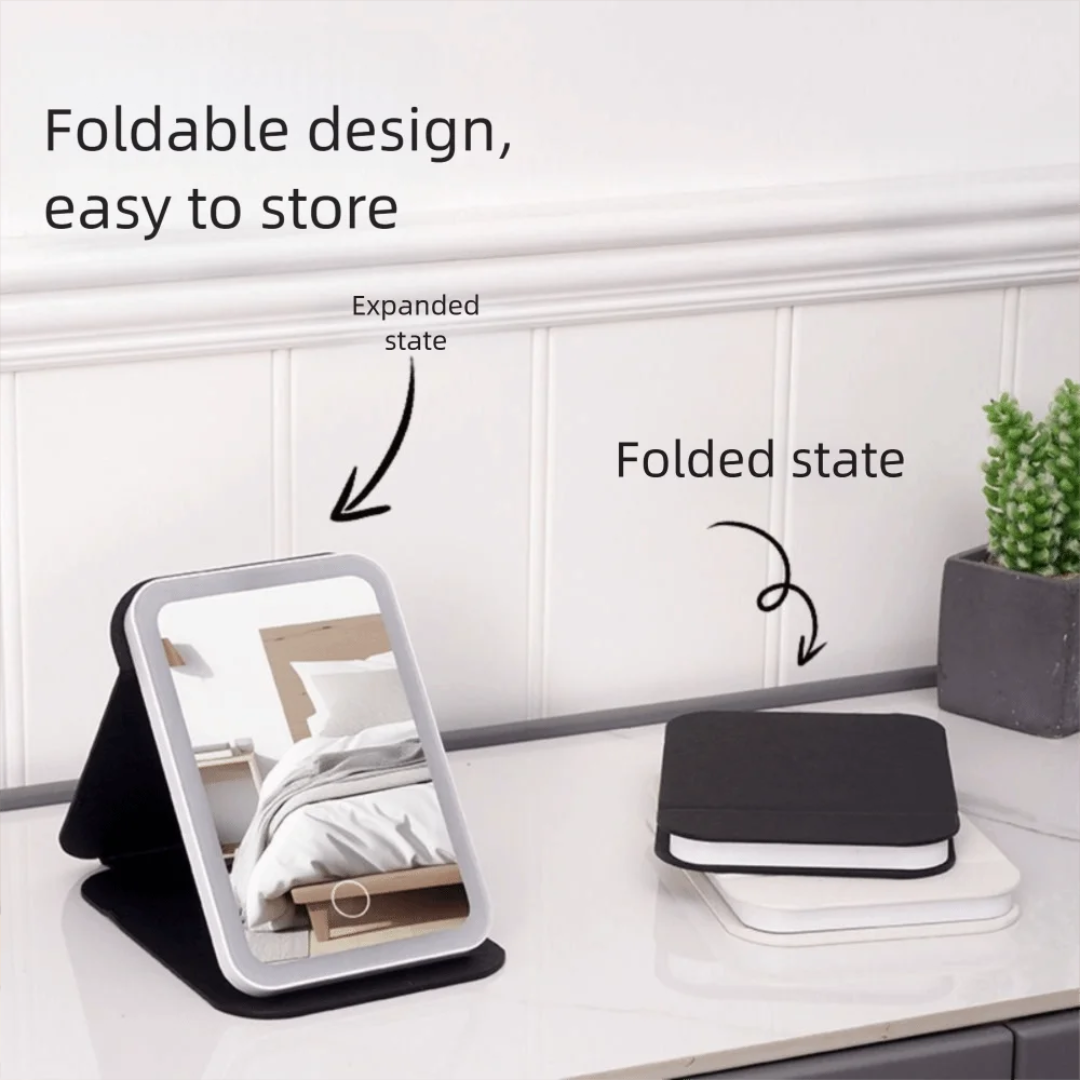 Innovador espejo de maquillaje LED plegable, un complemento perfecto para organizar tu baño. Con su diseño elegante y sus luces LED integradas, ahora puedes maquillarte con facilidad y precisión, incluso en condiciones de poca luz.