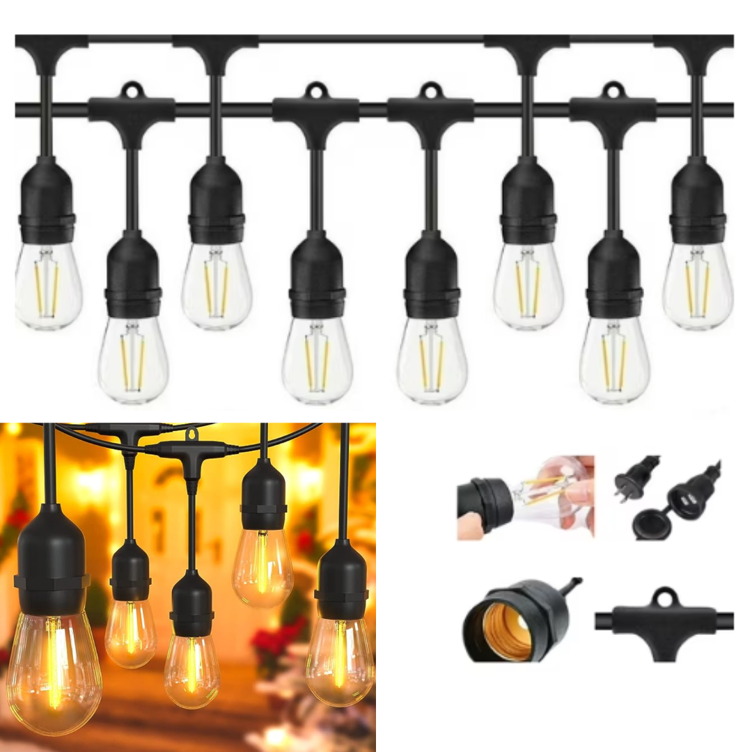 La Guirnalda Exterior Vintage 10M+10Ampolletas, cambiará por completo el look de tu terraza. Con una iluminación diferente puedes cambiar todo el ambiente de tu terraza, ¿luz cálida? ideal para una tarde de relajo con amigos, ¿luz día? ideal para estudiar, compartir una rica once en familia.